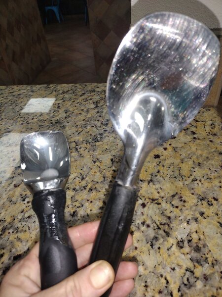 What a deal to get this ice-cream spade over the similar name brand counterpart. I cannot tell the difference from the handle to the spade (~2.75" wide), to the slight curvature of the spade, and to the thickness of the metal spade (~2mm), Had I known the quality of this spade does not fall behind the name brand counterpart, I would stick with this one - no contest.