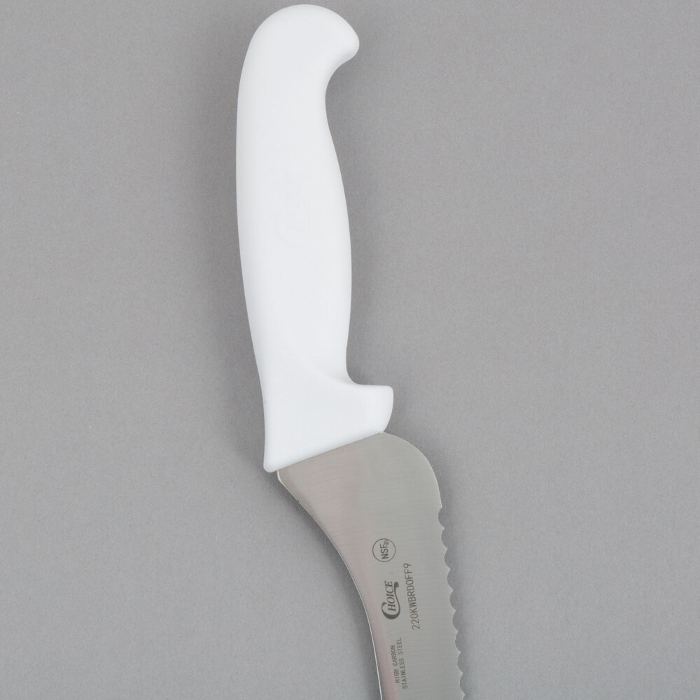 Choice 9" Offset Serrated Edge Bread Knife with White Handle