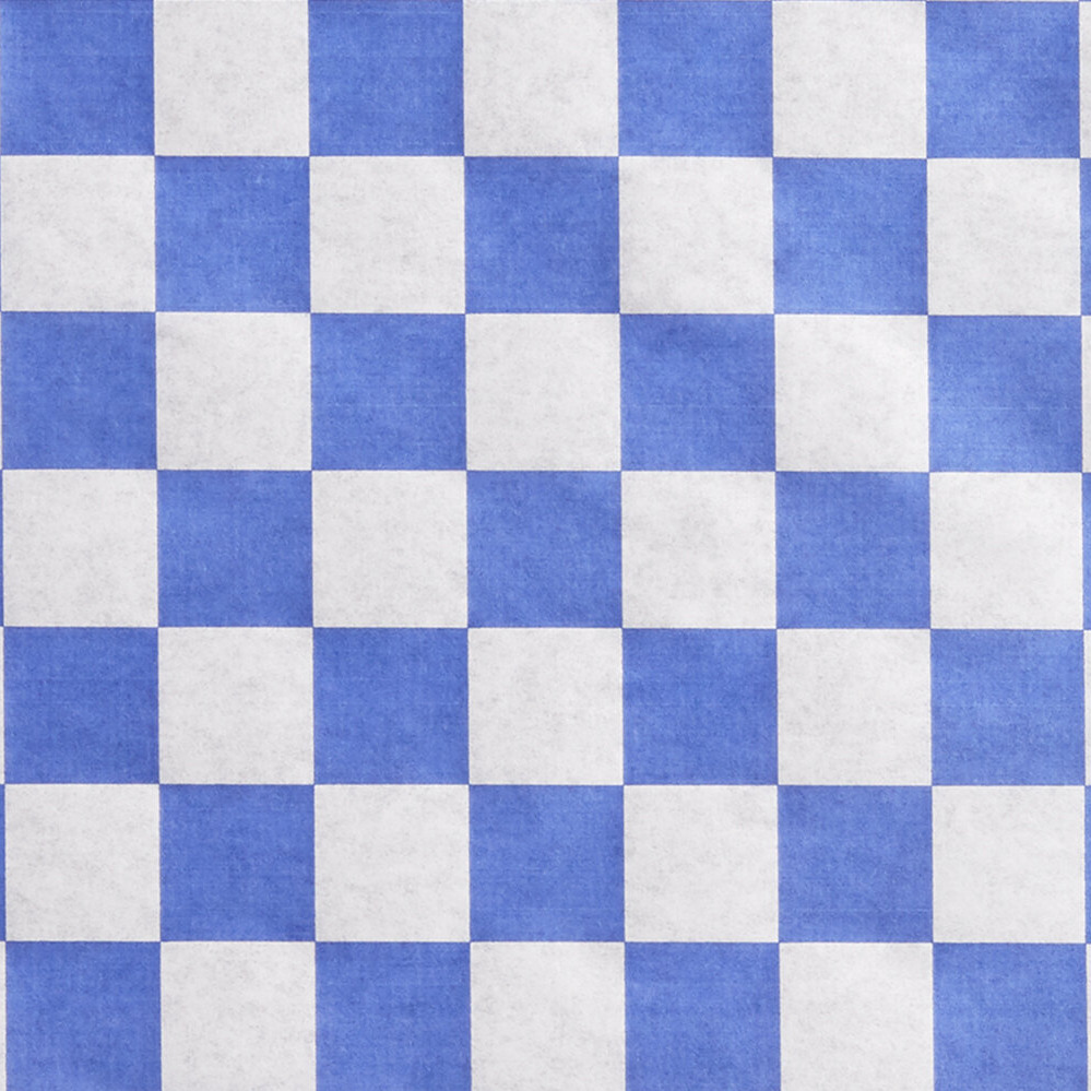 Featuring a striking check design, this Choice 9" x 12" blue check deli sandwich wrap paper brings a fun and exciting pattern that enhances your venue's personality. Use it to wrap sandwiches, burgers, hot dogs, and bratwursts, or line serving baskets with this playful paper.