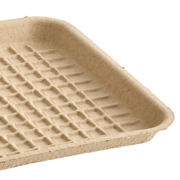 This tray is made from strong molded fiber and 100% recycled material! It's a great way to promote your green values to customers in comparison to foam or plastic alternatives. The strong design has a molded feel and texture that offers an easy grip.