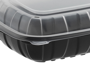 Its black base and clear lid accentuate your food, while its anti-fog vent minimizes condensation for excellent product visibility.