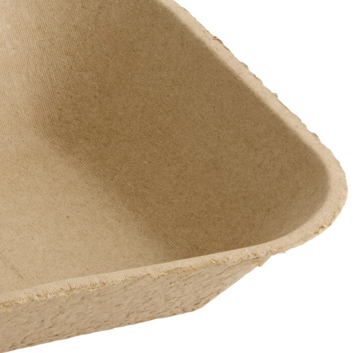 A great eco-friendly choice for your establishment, this tray is made from strong molded fiber and 100% recycled material. This makes it a great way to promote your green image to customers in comparison to foam or plastic alternatives! The strong design has a molded feel and texture that offers an easy grip. For optimal serving results, be sure to put down deli paper before placing food on the tray.