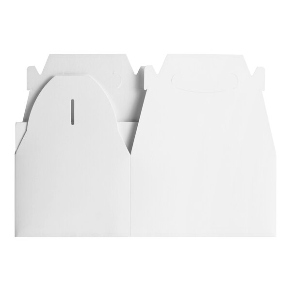 Constructed with sturdy paperboard, this take-out box is durable and reliable for transporting your customers' meals. The reinforced handles make it easy to carry, while the top vent allows steam to escape, preventing condensation buildup and keeping food fresh. Plus, it features a grease-resistant design to minimize messes during transportation.