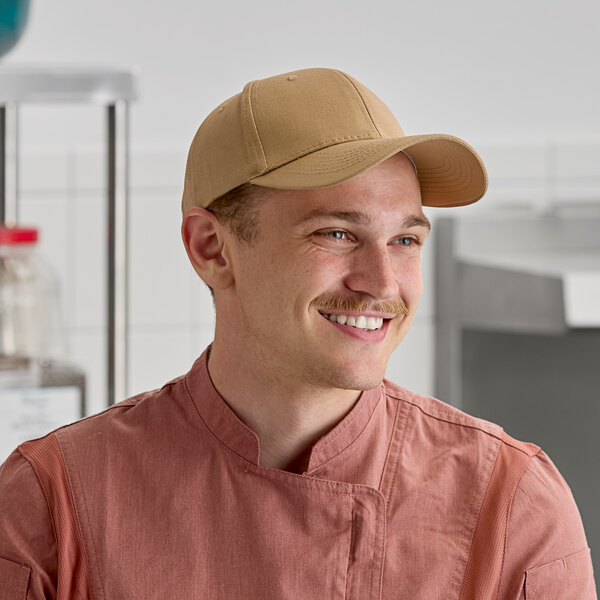 This Choice khaki 6-panel cap is the perfect addition to your staff members' uniform at your casual dining establishment.