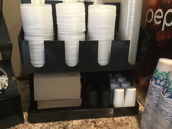 Kept lids, straws, and cups organized nicely. Very sturdy and plenty of room for everything we had at the drink station. Great addition and I would purchase again.