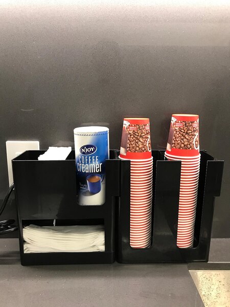 I am VERY satisfied with this lid and straw organizer. It is perfect for our condiment bar. It holds a great amount of sweeteners and i seldom refill twice in a dau
