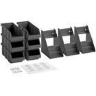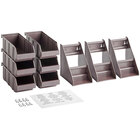 This set includes (6) organizer bins, (3) two-tier stands, (2) packs of 4 connector clips, and (2) label sheets. Use this set to organize your pre-packaged condiments and flatware for your take-out order preparation station or at your self-serve beverage station.
