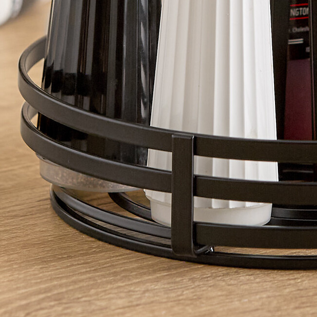 This Choice 8" x 9 1/2" black flat coil round wrought iron condiment caddy is perfect for holding salt and pepper shakers, as well as bottles of salad dressing, ketchup, and mustard. Use it to store your signature barbecue sauce or seasoning blends on your dining tables for easy access by your customers. With this wrought iron caddy, you'll be able to stay organized in style.