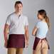 The burgundy color hides dirt and grime, making it ideal for a waiter or barkeep that is completing all tasks from changing kegs or running orders to washing dishes and wiping counters. Your bar and wait staff will look sleek and professional in this Choice apron.