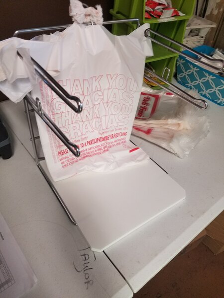 This t-shirt bag rack works well. It is sturdy and holds and dispenses bags easily. Buying from Webstaurant was definitely the best way to go about acquiring this item.