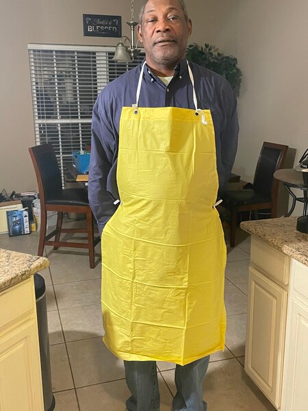 The 8 mil vinyl construction means this apron is easy to simply wipe clean when necessary so that it's ready for use whenever you need it. Plus, ties at the neck and on the sides allow this apron to be retied for a more customizable fit, ensuring it will comfortably fit the majority of your staff. Its longer length also provides ample coverage and protection to keep your employees' clothes free of spills and stains.