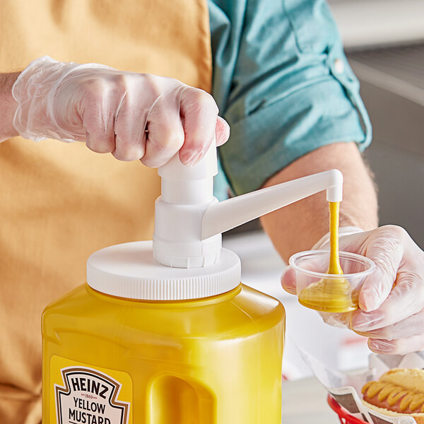 Easily serve guests their favorite condiments using this Choice condiment pump kit with 1 oz. condiment pump and 110 mm screw-on adapter lid!
