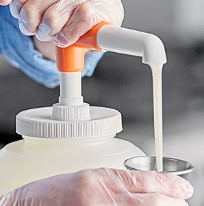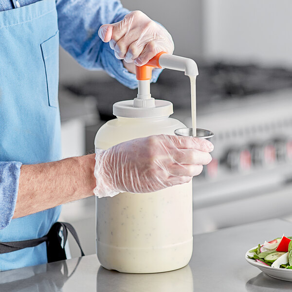 This condiment dispenser ensures portion control and reduces waste by dispensing 1 oz. per pump. The pump is designed to fit the included 1 gallon plastic bottle perfectly. Also included is an 89 mm threaded adapter lid, which attaches securely to the bottle to reduce the chance of condiment leakage.