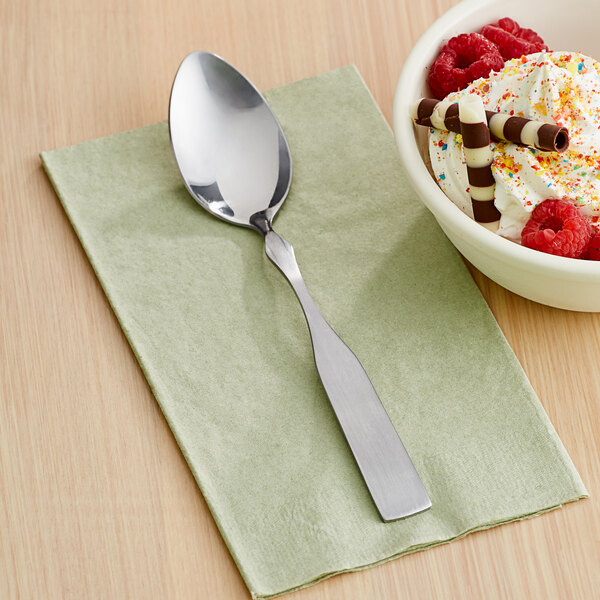 Your guests are sure to appreciate the sturdy construction of this flatware, and it won't break your budget! With an 18/0 stainless steel construction, it will be a long-lasting and attractive addition to your busy dining area. Serve this dinner / dessert spoon not only with your main entrees, but with ice creams, custards, and other sweet treats, too, to provide guests with an unforgettable dining experience.