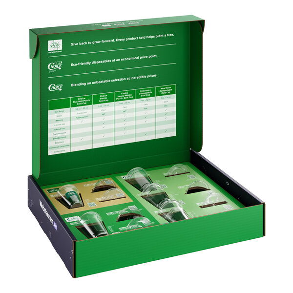 By ordering this Choice, EcoChoice, and New Roots plastic cold cup and lid sample kit, you're able to touch and see several cup / lid options in person to best choose an option that meets all the unique requirements of your business operation before committing to the purchase of a full case. This plastic cold cup sample kit is a must-have for any establishment looking to elevate their beverage presentation.