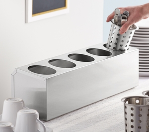 We use these at our condiment bar to store our sugars and utensils. they work great are sturdy, and easy to clean. the removable cylinders make a huge difference.