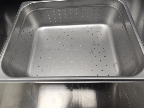 Easily steam and drain your sides and entrees in your banquet hall or buffet with this full size anti-jam steam table and hotel pan. Built from sturdy 24 gauge 18/8 stainless steel, this product is impact resistant, so it’s sure to stand up to long-term use in your commercial environment. Additionally, this product has a depth of 4", making it ideal for serving salads and entrees.