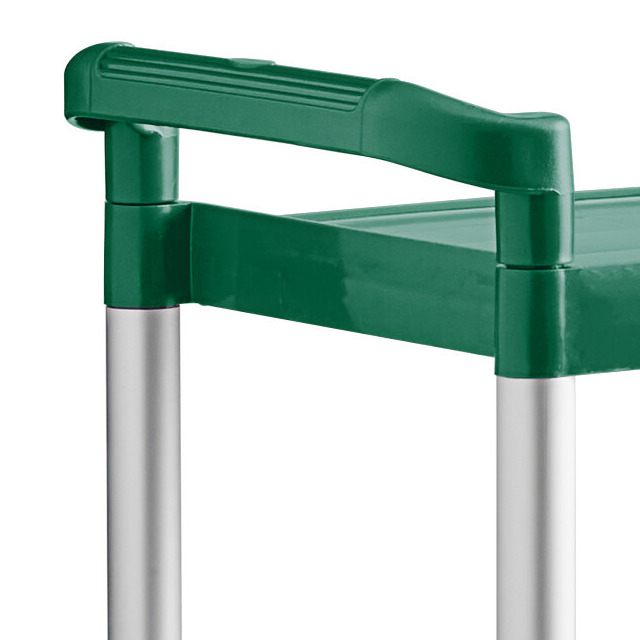 Perfect for restaurants, hotels, janitorial staff, caterers, and more, this Choice green three shelf utility / bussing cart is a reliable way to transport a wide array of items from full bus tubs to janitorial supplies.