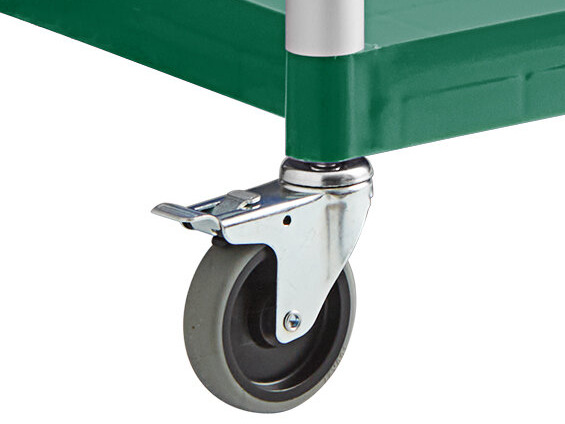 This utility cart features four 4" swivel casters with two brakes that allow you to maneuver around furniture and corners with ease.