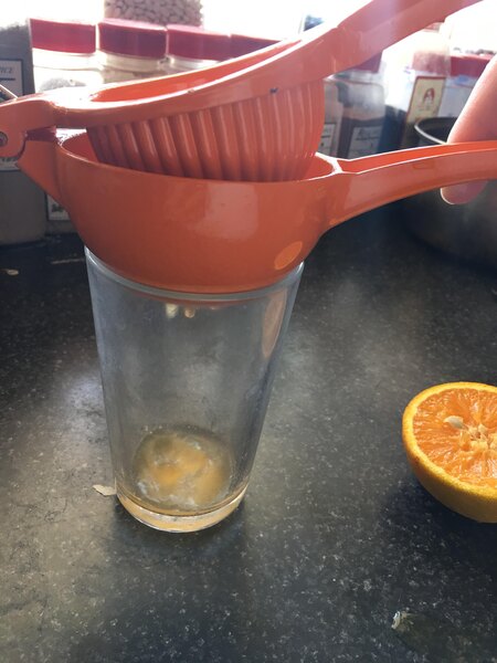 Great way to get the most out of your citrus. i will often squeeze the orange 3 times, flipping it over twice and can often yield a a lot of juice.