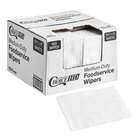 Use this Choice 13 1/2" x 21" white medium-duty foodservice wiper for a perfect clean every time! Perfect for use in front- or back-of-house operations, this wiper is ideal for cleaning, degreasing, and sanitizing surfaces. It features a medium-duty construction that is strong enough to absorb messes while still being gentle on delicate surfaces. Plus, it's a great alternative to bar towels and cloth rags because while it can be washed and reused, it can also be easily disposed of after a tough job like degreasing. Plus, its compact design saves space in your busy operation. It is a low lint wiper, so nothing is left behind on clean surfaces.