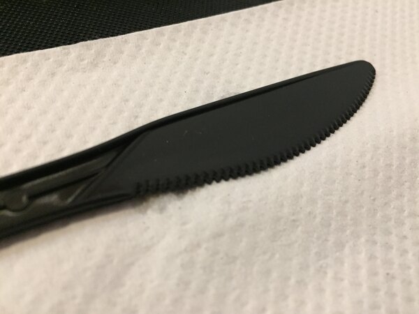 These black plastic knives come in a pack of 100 and are very affordable. If you prefer individually wrapped options, you can get this exact knife in individual packaging as well.