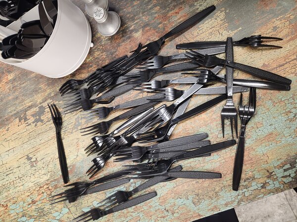 I am very disappointed with the quality of these forks. Many of the forks arrived with visible damage right out of the box—some were missing tines, and others had broken pieces of plastic in different areas. Even the forks that seemed fine initially have broken easily during regular use. We use them for our weekly lunches, and it's frustrating that guests often have to use two or three forks just to get through a meal. The overall durability of these utensils is far below what I expected. Unfortunately, I would not recommend these forks to anyone looking for reliable, long-lasting utensils.