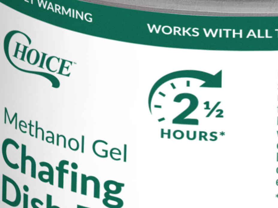 This is an economical chafing fuel, works as well as the name brand. burns clean and keeps the food warm for the full time span. the only negative is that the paper label will burn, and give off the strong smell. this is solved by removing the label prior to lighting.