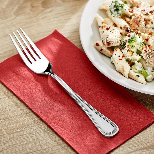 This dinner fork features a beaded edge and a subtle design that doesn't feel out of place in a casual dining atmosphere. Its polished finish offers a clean appearance, and it is very much at home in your family restaurant, bar and grill, or cafe.