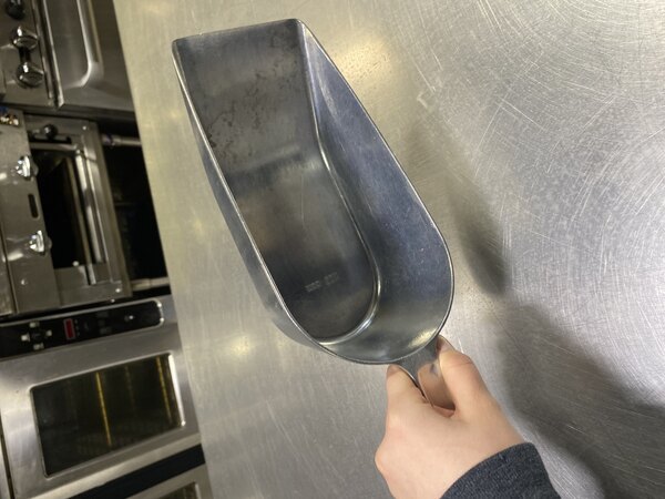 "Perfect for scooping. This scoop should last a lifetime. Well made out of aluminum, the flat bottom makes it easier to get materials out of the bottom of whatever container you are scooping from and doesn't spill."