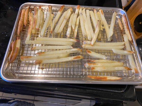 The racks are great for quick air frying in a small convection oven. But, both sheet pans I received were both dented and scratched pretty bad. They still work, but for being new, not pleased.