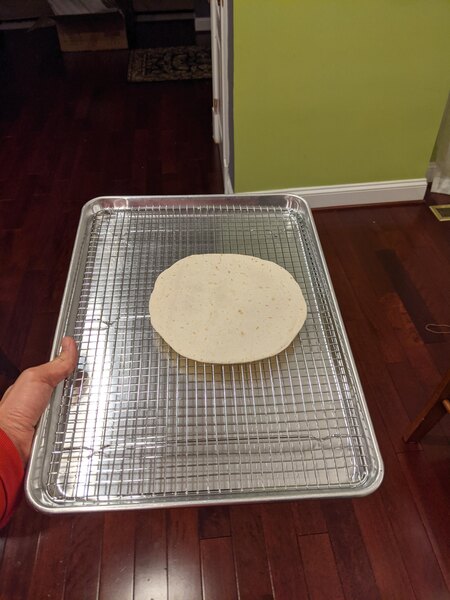 This is my most versatile baking sheet - it's enough real estate to hold food for probably 3 - 4 people without becoming unwieldy. Perfect!