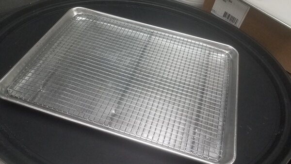 The quarter sheet pan also features a corrosion-resistant, galvanized bead wire in its rim to preserve the shape and protect against rusting and flaking. Also known as a baker's tray or sheet pan, this bun pan's reinforced design ensures longevity even in the most grueling kitchen environments. This stacking sheet tray and rack kit maximizes storage space in your commercial kitchen.