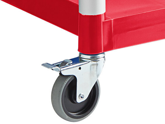 This utility cart features four 4" swivel casters with two brakes that allow you to maneuver around furniture and corners with ease.