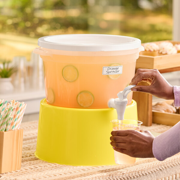 This Choice round 3 gallon translucent beverage dispenser with yellow base is the perfect balance between functionality, durability, and style.