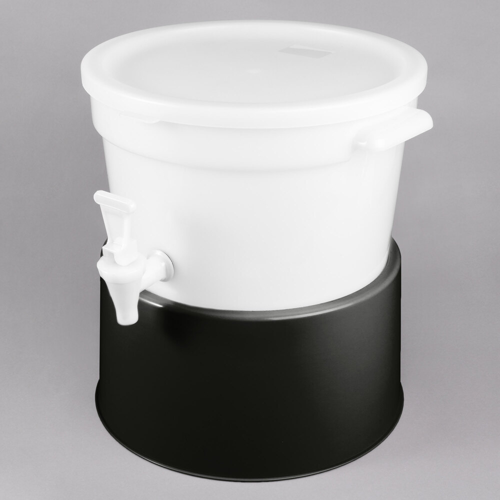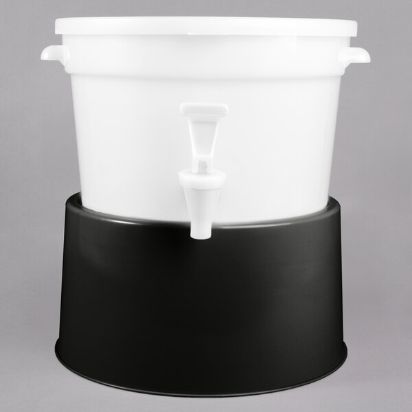 This Choice round 3 gallon white beverage dispenser with black base is the perfect balance between functionality, durability, and style.