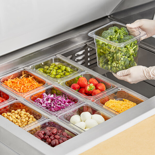 This set features 16 pans, the perfect amount for refilling your Avantco 60" cutting top sandwich prep table! Designed to expand the functionality of your food storage and serving operation, this set offers an economical option for busy foodservice establishments. The durable polycarbonate construction is resistant to stains and chemicals, which promotes increased longevity in addition to added flavor and freshness protection.