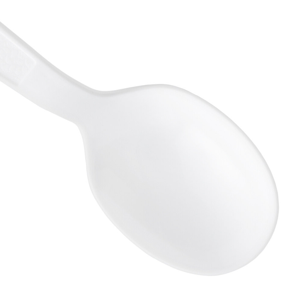 This spoon is perfect for your take-out restaurant, cookout, party, gathering, or other catering event. Use it to fill your flatware bins at your snack shack or concession stand or to complete your polystyrene plastic cutlery setting. The white color is complementary to virtually any dining environment and can be dressed up or down according to the atmosphere of your event. This disposable soup spoon is extremely versatile and great for use with soup or chowder.