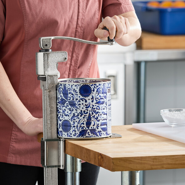 This Choice Prep standard duty #10 can opener with base is perfect for medium duty applications in any kitchen or prep area.