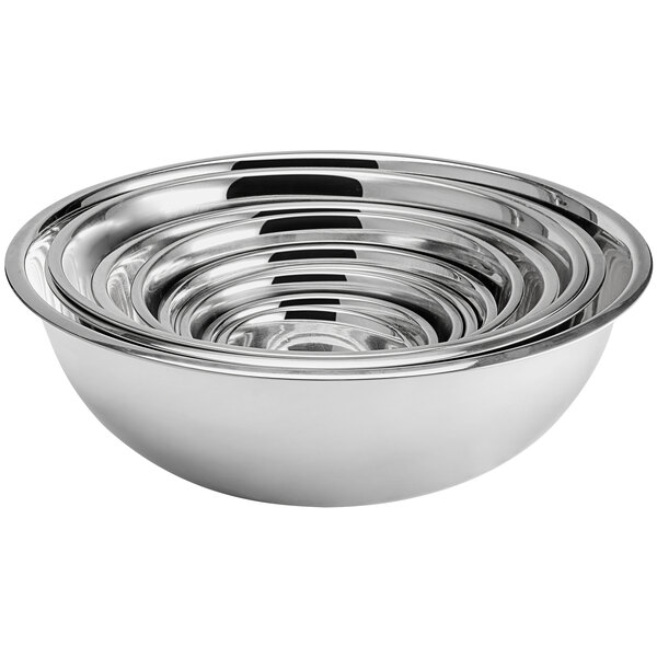 From whipping up a quick vinaigrette to mixing a large batch of pastry dough, there is a bowl size for it all. When you're finished using these bowls, they stack with each other for compact storage. Whether you're whisking batter, mixing sauce, whipping cream, or tossing salad, this bowl set provides a great range of sizes that are designed for convenient, real-world use.