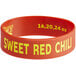 This label band fits 16, 20, and 24 oz. standard and wide mouth bottles and has "Sweet Red Chili" clearly printed to communicate to your kitchen staff what condiment or ingredient is inside. By adding these convenient identification labels to your workflow, you'll save time searching for the right ingredients, reduce errors, and keep customers happy!