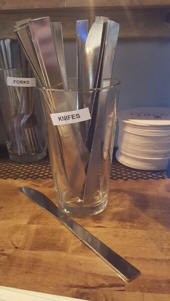 Knives were ok for our purposes, and the price can't be beat, but these were not the same quality as the Choice Windsor forks we've purchased twice in the past. Some had rough edges, many had abrasion marks from production. Same with spoons. A qc problem or Choice is using a different manufacturer sub. These would not be acceptable for most purposes.
