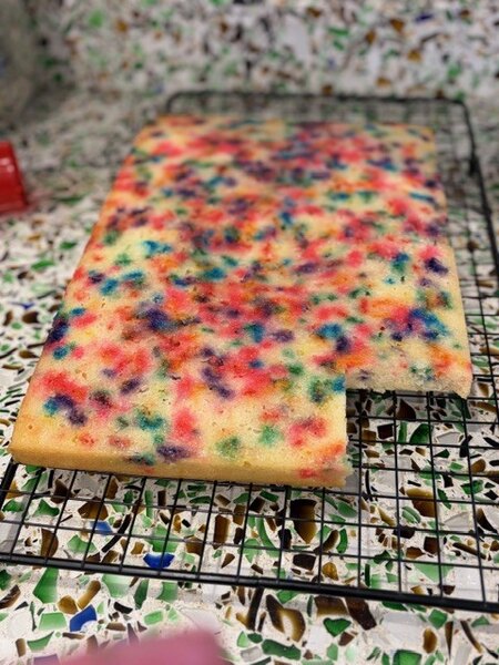 We love these sprinkles!! They do NOT bleed into the cake batter when making a funfetti cake and they also taste good! I love the mix of colors, especially the addition of purple which is not always in rainbow sprinkles.