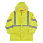 Keep workers visible and protected from rain with this Ergodyne GloWear 8366 rain jacket. This jacket offers comfortable protection against the elements, making it ideal for construction workers, parking lot attendants, crossing guards, and emergency response crews. With a bright lime green color, this jacket draws attention to the individual wearing it for increased safety on the job. It has 2" silver reflective tape across the chest and arms, providing enhanced visibility at night or in low-light conditions. This Class 3, Type R jacket is designed for roadway occupational use, and it maintains compliance with ANSI/ISEA 107-2020 standards.