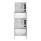 This Cleveland 2-21CET8 SteamCraft Ultra double 3 pan electric countertop steamer package is a powerful, space-efficient solution to all of your steam cooking needs. Energy-efficient and cost-effective, each of the 2 steamers in this package utilize advanced technology and innovative features for superior performance. They also stack with the included stacking kit and sit on the included equipment stand, saving precious back-of-house space and equipping a kitchen with 2 steamers in the footprint of 1.