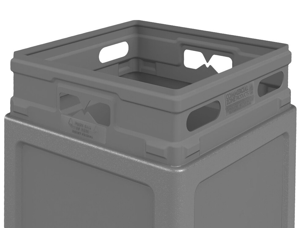 This Commercial Zone 73290399 PolyTec gray waste container is an appealing, practical unit that adds instant functionality to any venue. Its recycled polyethylene design is durable, environmentally friendly, and rust-, dent-, and chip-resistant. Perfect for shopping malls, cafeterias, restaurants, and hotels, this durable trash can pairs an attractive gray color with a 42 gallon capacity to accommodate the needs of any high-traffic area.