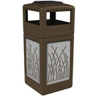 Commercial Zone 733016299 42 Gallon Brown Square Trash Can with Stainless Steel Reed Panels and Ashtray Lid