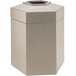 Improve the look and sanitation of any indoor or outdoor setting with this Commercial Zone 737202 PolyTec beige hexagonal waste container. Perfect for shopping malls, cafeterias, restaurants, and hotels, this durable trash can pairs an attractive color with a 45 gallon capacity to accommodate high traffic areas with less frequent bag changes. Not only is the 25% recycled polyethylene material environmentally-friendly, it is also resistant to rust, dents, and chipping, making this trash can a long-lasting addition to any facility.