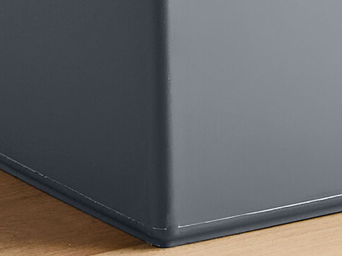 We are very happy with this trash can! The square shape makes it look less industrial, despite the size. No sharp edges to catch on bags, and heavy enough that it won't shift or tip no matter how it's treated. Note that it does not match properly with the Continental Gray Swingline lid - the can is a steel gray, and the lid is a medium gray.