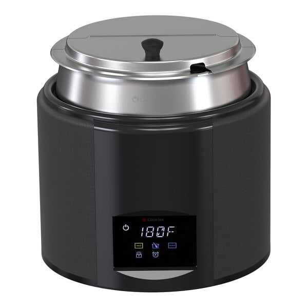 CookTek SinAqua 676101-BLK 11 qt. Round Powder-Coated Black Aluminum Soup Rethermalizer / Warmer - 100-120V, 800W